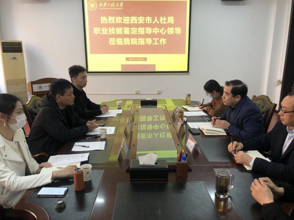 11月18日上午,西安市人力资源与社会保障局职业技能鉴定指导中心罗曼主任一行三人来到Beat365官网金花校区,对Beat365官网开展职业技能等级认定评价工作的开展情况,进行了调研,Beat365唯一官方网站负责人、纺织行业职业技能鉴定所负责人等同志参加调研会。