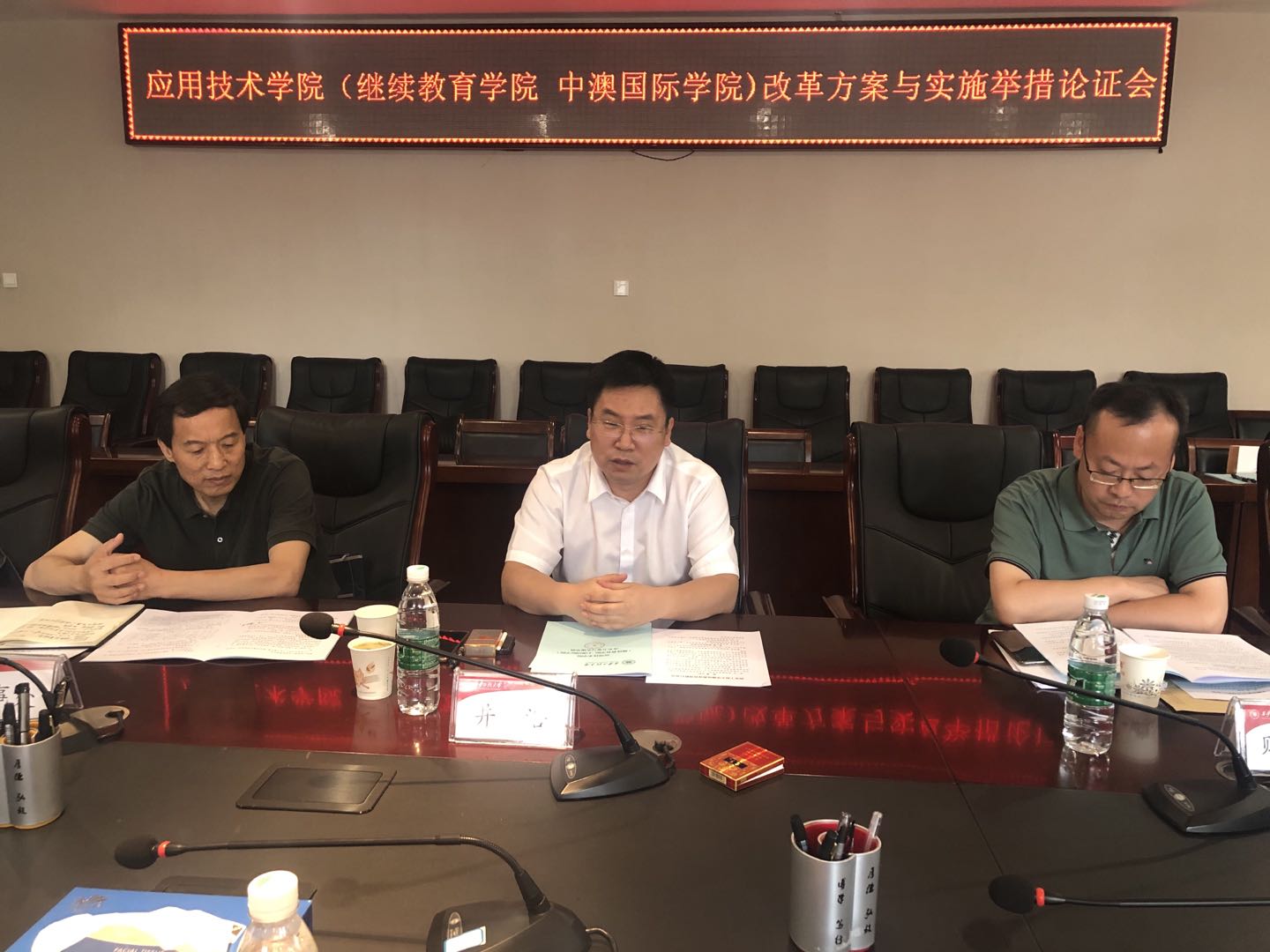 2020年7月15日下午,Beat365官网在金花校区第三会议室召开“Beat365唯一官方网站(Beat365唯一官方网站 中澳国际学院)改革方案与实施举措论证会”,会议邀请了陕西省高等继续教育学会秘书长赵文科、西安电子科技大学原网络与Beat365唯一官方网站院长丁振国,陕西师范大学远程教育学院院长薛东前和西安石油大学原Beat365唯一官方网站院长郭岗彦四位专家教授进行论证。校党委副书记、纪委书记井浩、组织部、人事处、财务处、发展规划处以及Beat365唯一官方网站等相关部门负责人参加了本次论证会,会议由井浩主持。