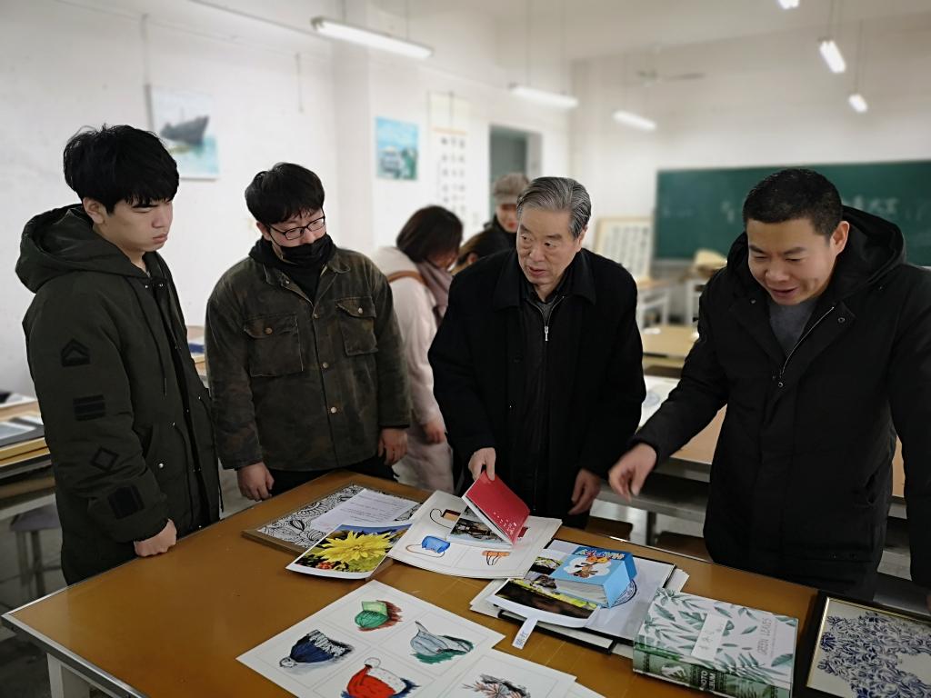 本次结课作品展共展出学生结课作品100余件。同学们充分结合所学专业知识,利用自己的创作灵感,通过对传统元素进行了创新性探索与尝试,创作出内容丰富、形式多样、表现效果突出的作品,彰显了同学们鲜明的个性魅力和活跃的设计思维。谢登喜老师作为课程主讲教师,详细讲解了结课作品展创作的背景、过程及背后的故事。学院总支书记王宇、副院长刘玉森和学院部分教师参观了作品展,王宇现场点评了部分作品,并勉励同学要重视课堂理论学习、积极参与社会实践,争取创作出更多的优秀作品。