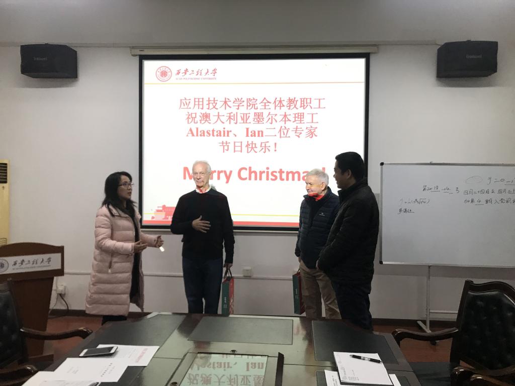 12月25日上午,Beat365唯一官方网站副院长刘玉森和学院教务科、教研室相关老师一起走访慰问了正在Beat365官网承担中澳合作办学项目专业课教学的澳大利亚墨尔本理工学院Alastair、Ian两位外籍教师,代表学院向他们送上节日的祝福。