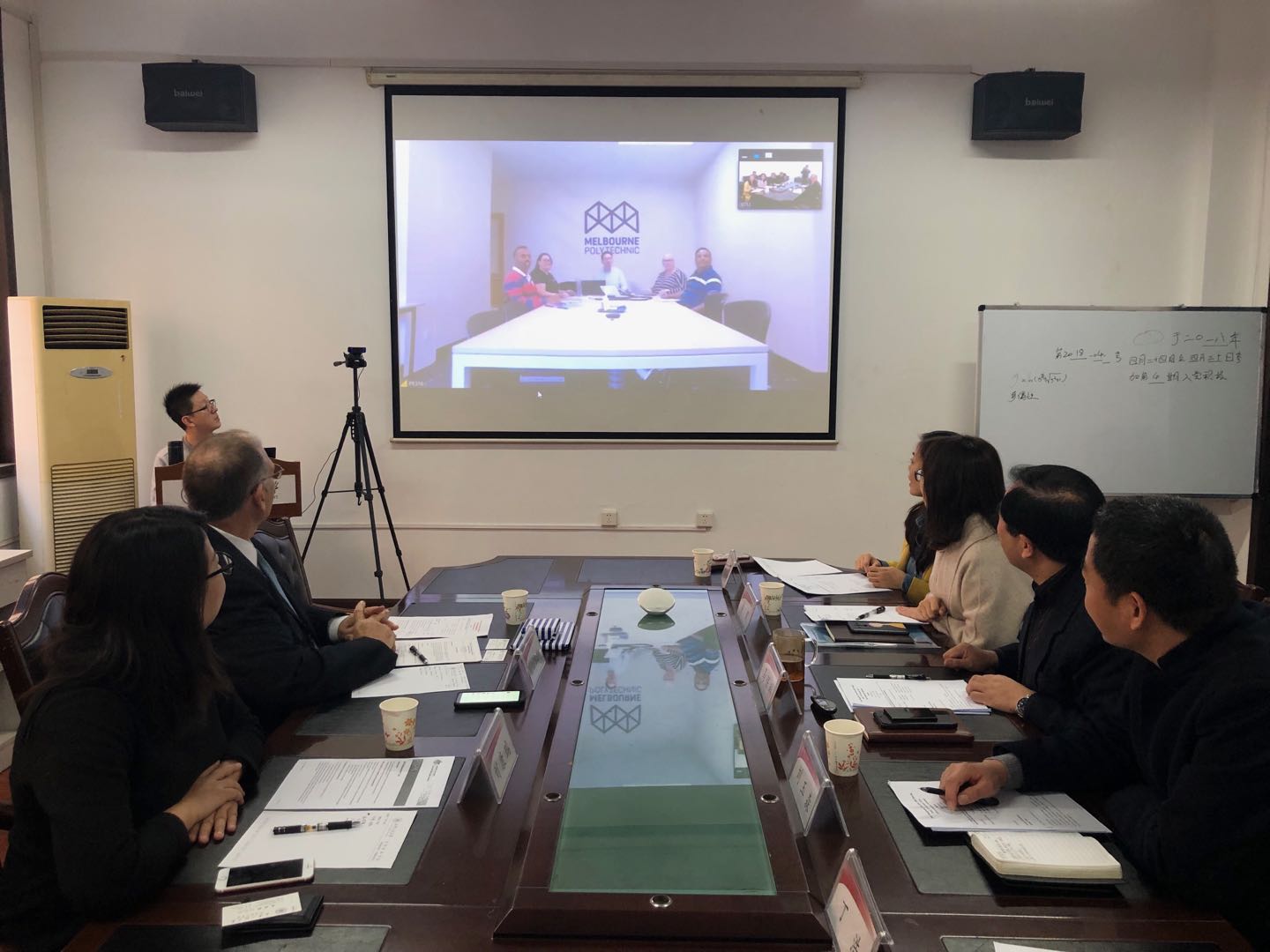 2019年11月15日上午,中澳合作办学联合管理委员会视频会议在Beat365官网顺利召开。Beat365唯一官方网站代表学校与澳方就中澳合作办学项目的教学执行情况进行检查交流,并就探索开展新的项目合作内容进行了深入探讨。澳大利亚墨尔本理工学院国际项目总监Mike Brearley以及中国项目部刘康瑞出席会议现场,澳大利亚墨尔本理工学院信息技术部经理Joanna Jackson、IT学院软件开发专科课程教师Uday Vaidya以及商业与市场营销教师主任Rama Ramanathan参加视频会议。国际处与Beat365唯一官方网站相关负责人参加了此次会议,会议由Beat365唯一官方网站院长马保科主持。
