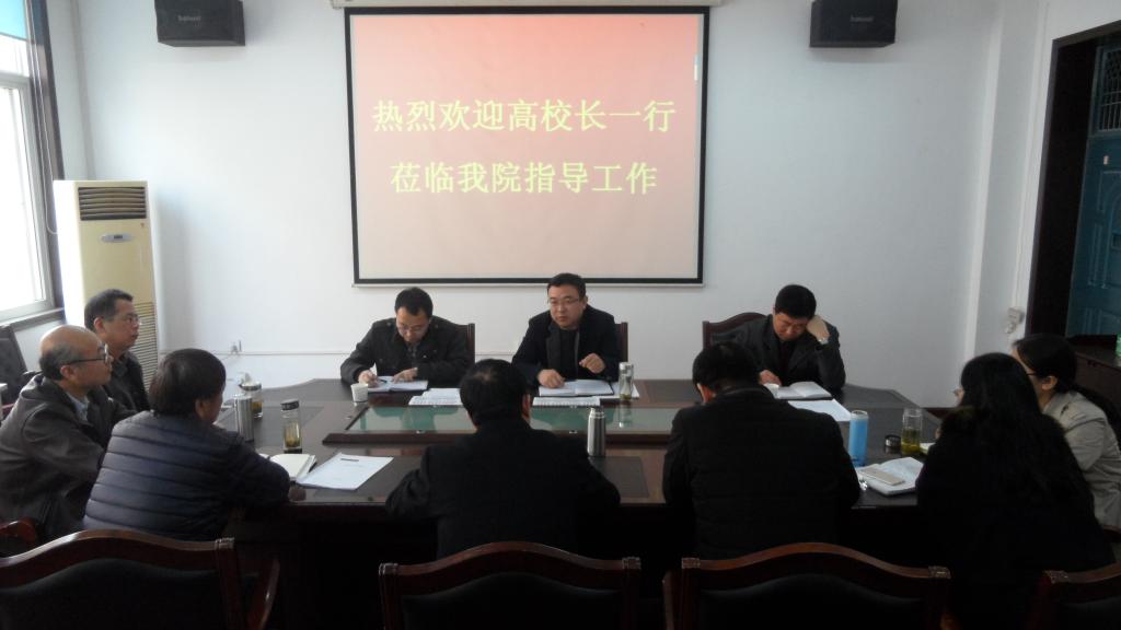3月22日上午,校长高岭、副校长黄新波在党政办主任殷永建的陪同下走访调研Beat365官网。Beat365唯一官方网站副院长马保科、党总支书记张智荣等学院领导班子全体成员以及各科室负责人参加了座谈。