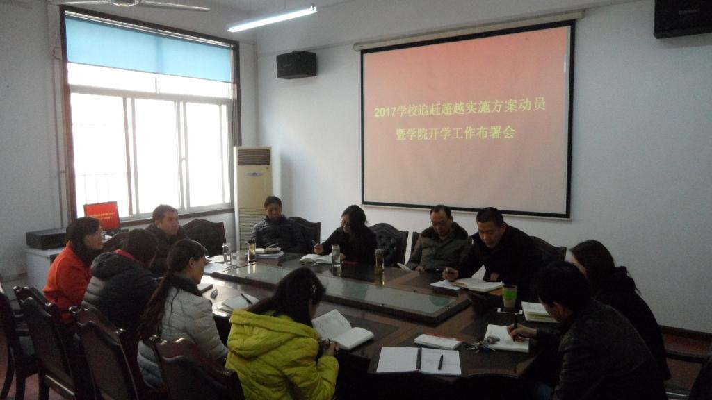 2月26日下午,Beat365唯一官方网站在学院会议室召开2017年Beat365唯一官方网站“追赶超越实施方案”解读及学院新学期开学工作布置会。副院长马保科、党总支书记张智荣、副院长刘玉森,以及全院教职工参加了会议。会议由马保科主持。