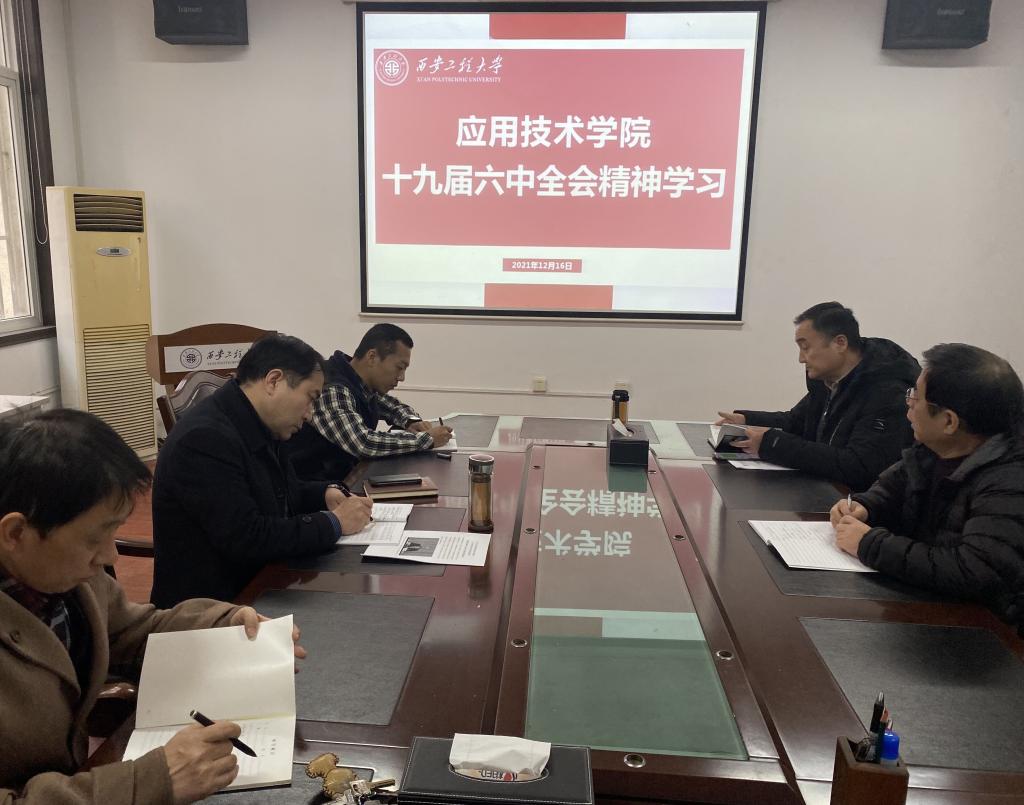 2021年12月16日下午,Beat365唯一官方网站直属党支部在金花校区学院会议室开展党的十九届六中全会精神专题学习,学院中心组成员参加,会议由直属支部书记王宇主持。